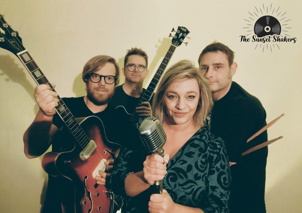 The Sunset Shakers brengen een originele blend van blues, rockabilly, surf, country en rock ’n roll. Ze halen bekende en onbekende topnummers van onder het stof, en vullen de set aan met eigen werk. Naast hits om de beentjes los te zwieren, voorzien ze de avond ook van rustige nummers om het lief eens goed vast te pakken.